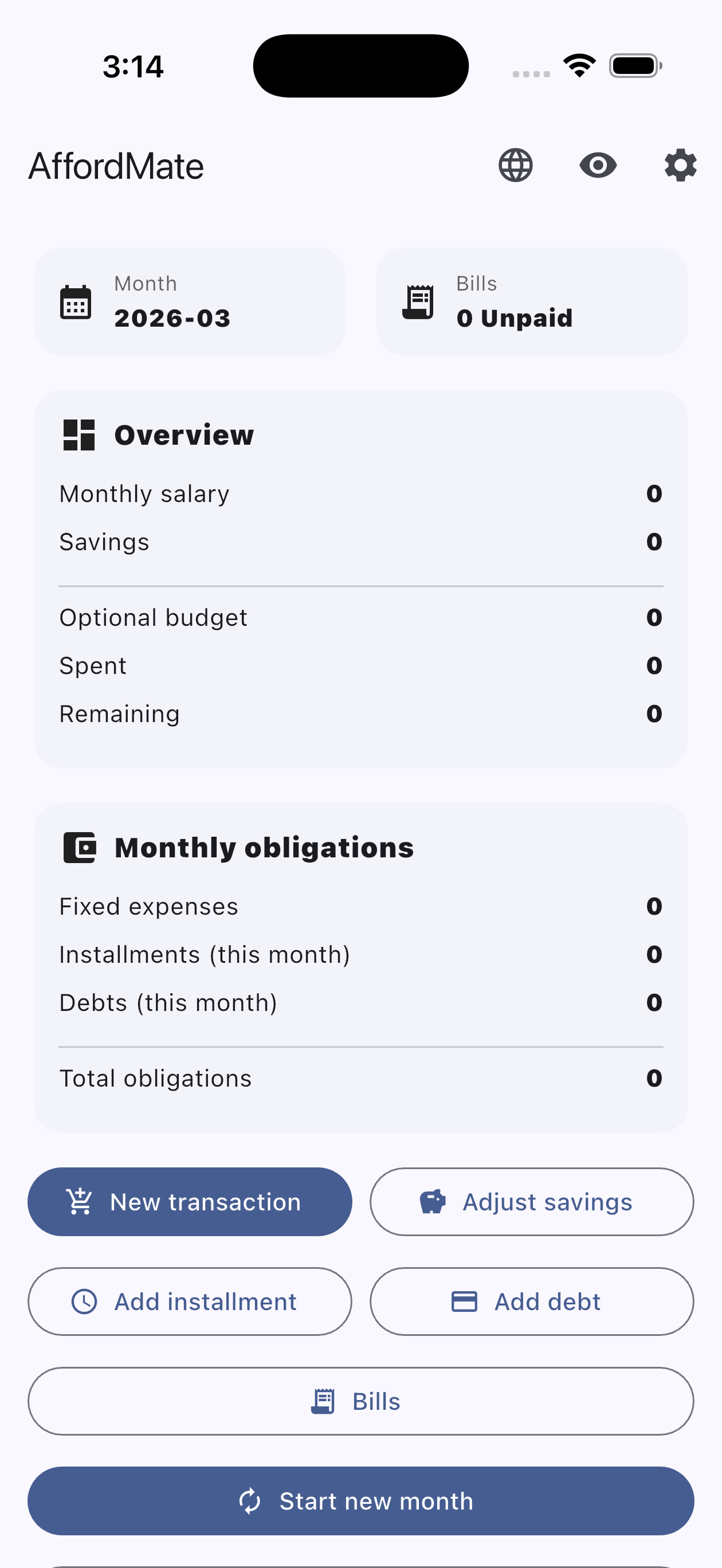 AffordMate helps you quickly understand whether you can afford a purchase. Enter the price, your income, and expenses to get an instant financial clarity before making decisions.